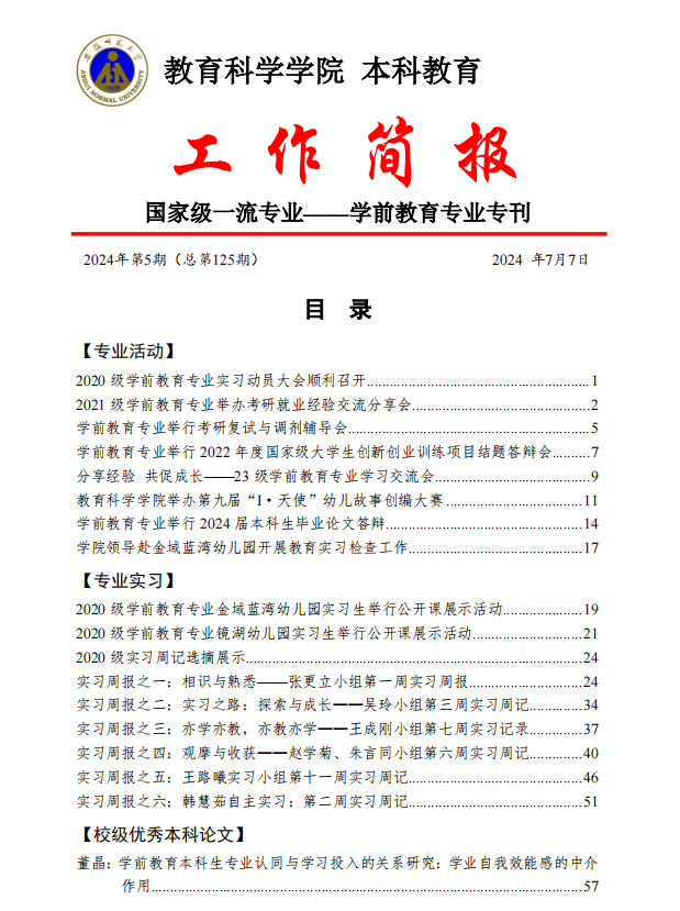 365英国上市官网本科教育工作简报(第125期)学前教育专业专刊
