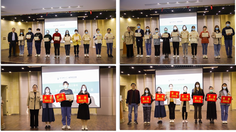 为营造积极进取浓厚的学习氛围,鼓励学院英语四六级考试中的先进个人与班级,教科院首次举行四六级高分表彰大会,英语四级分数达到600分以上及六级分数达到550分以上的20名同学荣获优秀个人奖,四六级通过率位居年级前列的三个班级荣获优秀班级奖。
