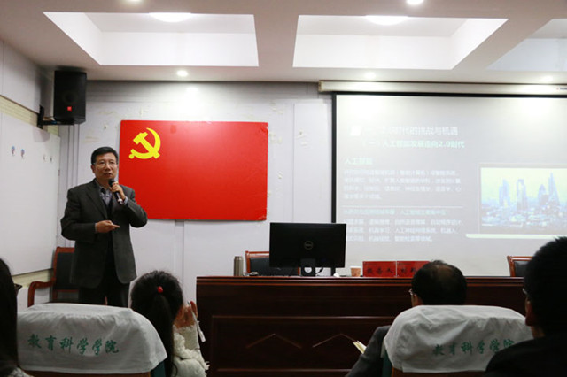 本网讯(教科院 文/朱瑞 图/刘媛媛)回首过往,我国教育信息化1.0时代取得了全方位突破和开创性成就,展望未来,教育信息化开始迈入2.0时代。11月27日下午,我院邀请了中国科大讯飞教育技术研究院院长、首都师范大学教育学院客座教授刘邦奇教授来我院作了主题为“2.0时代基础教育信息化:挑战与对策”的学术报告,报告在365英国上市官网三楼学术交流中心进行。副院长聂竹明教授主持本次活动,教育学相关专业教师及研究生近百人到场聆听。