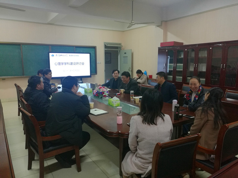 韩建涛)为响应学校一流学科建设暨新一轮一级学科博士学位授权点申报工作要求,12月3日下午,我院在408会议室召开心理学学科建设研讨会。本次研讨会有幸邀请到了浙江大学沈模卫教授,为我院心理学科建设把脉、献策。院长桑青松教授,心理学一级学科硕士点带头人葛明贵教授,心理学专业负责人王道阳副教授,以及部分心理学专业的教师参与了本次研讨。