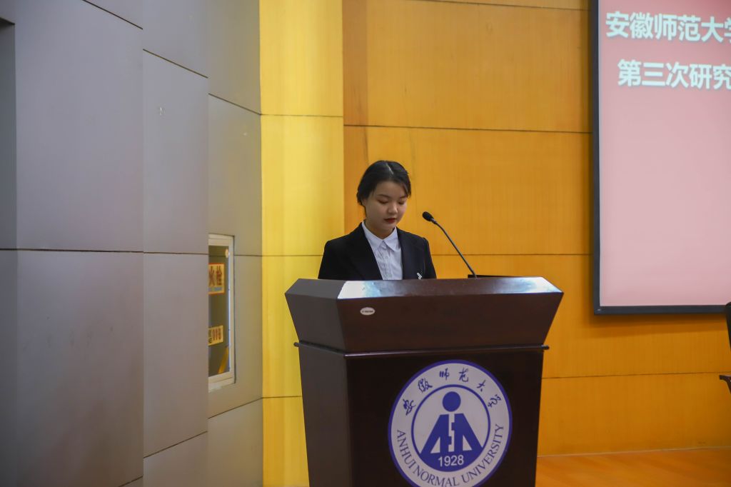 在第一次全体会议上,2021-2022学年教科院学生会主席团成员彭少斌,以及研究生会主席团成员谢伟燕分别代表院学生会、院研究生会作工作总结报告。
