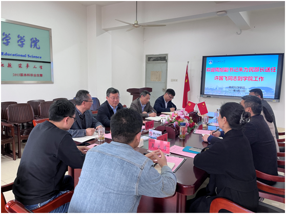 3月10日下午,校党委副书记周旭、组织部部长朱为民送任许国飞同志到365英国上市官网担任学院党委书记。