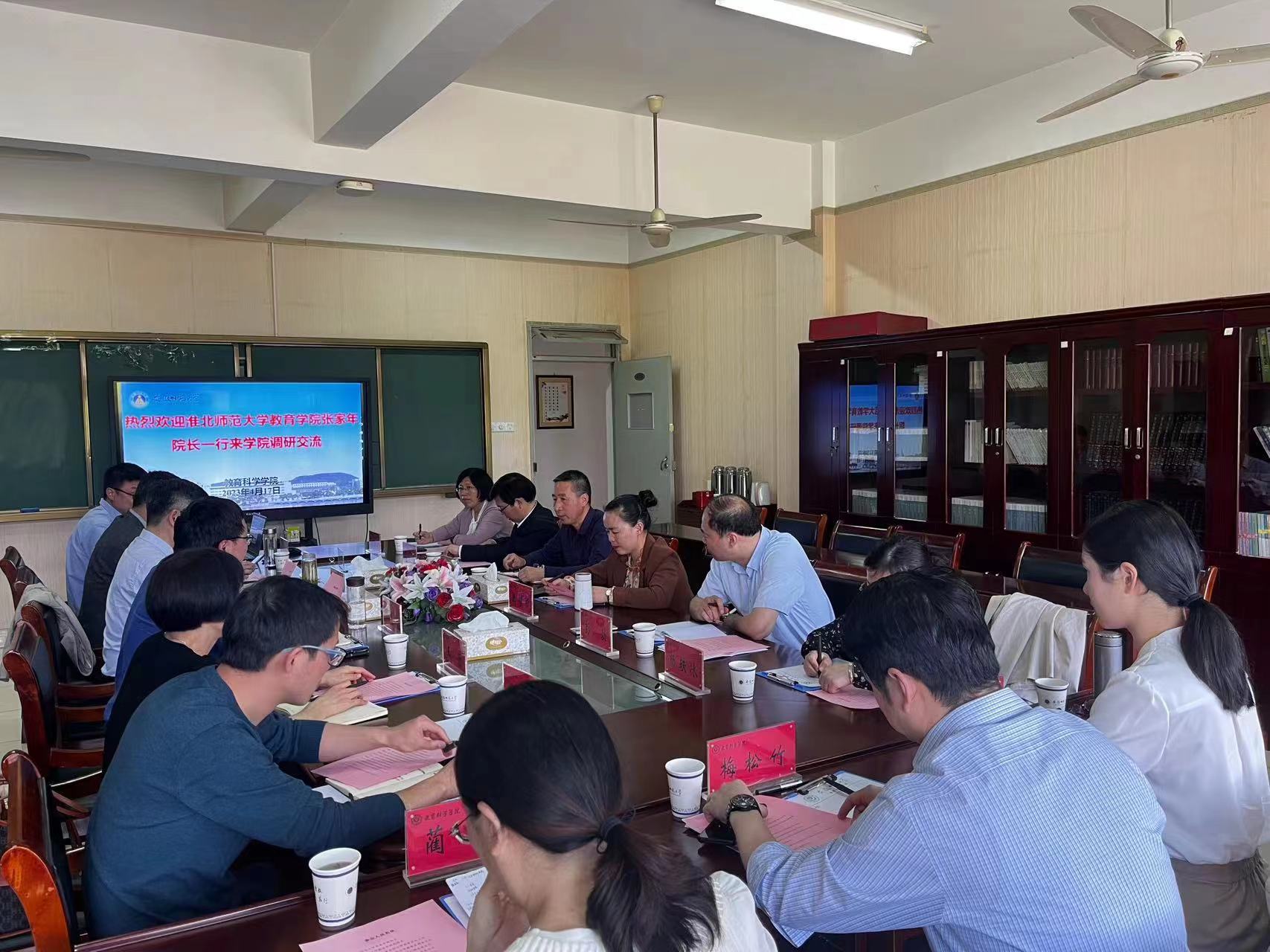 4月17日下午,淮北师范大学教育学院院长张家年、副院长张坤颖等人来我院调研交流,365英国上市官网院长李宜江,副院长张更立、韩建涛,相关专业负责人王芳、肖文、王礼军等教师参加了交流会,会议由韩建涛主持。