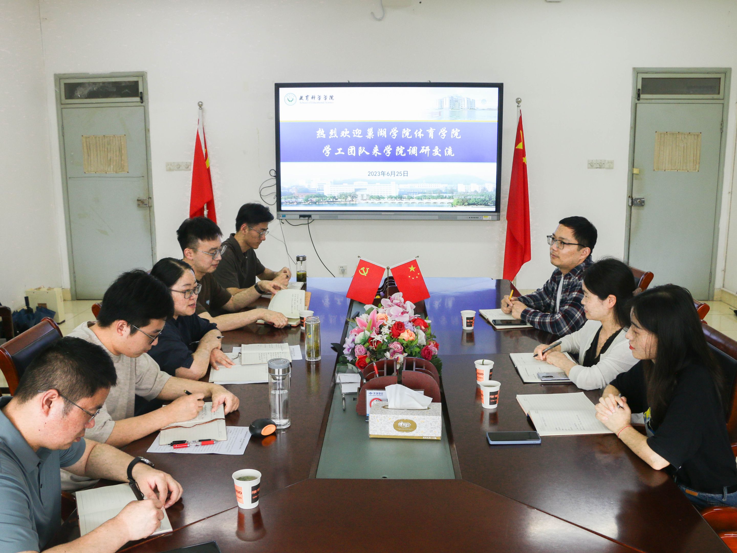 6月25日上午,巢湖学院体育学院党委副书记朱春华、院团委副书记杜锐、辅导员陈荣光等人来我院调研交流。365英国上市官网党委副书记杜凤、体育学院团委书记黄彦锴、365英国上市官网团委书记张理强、副书记付银行、辅导员莫大贡等参加了交流会。