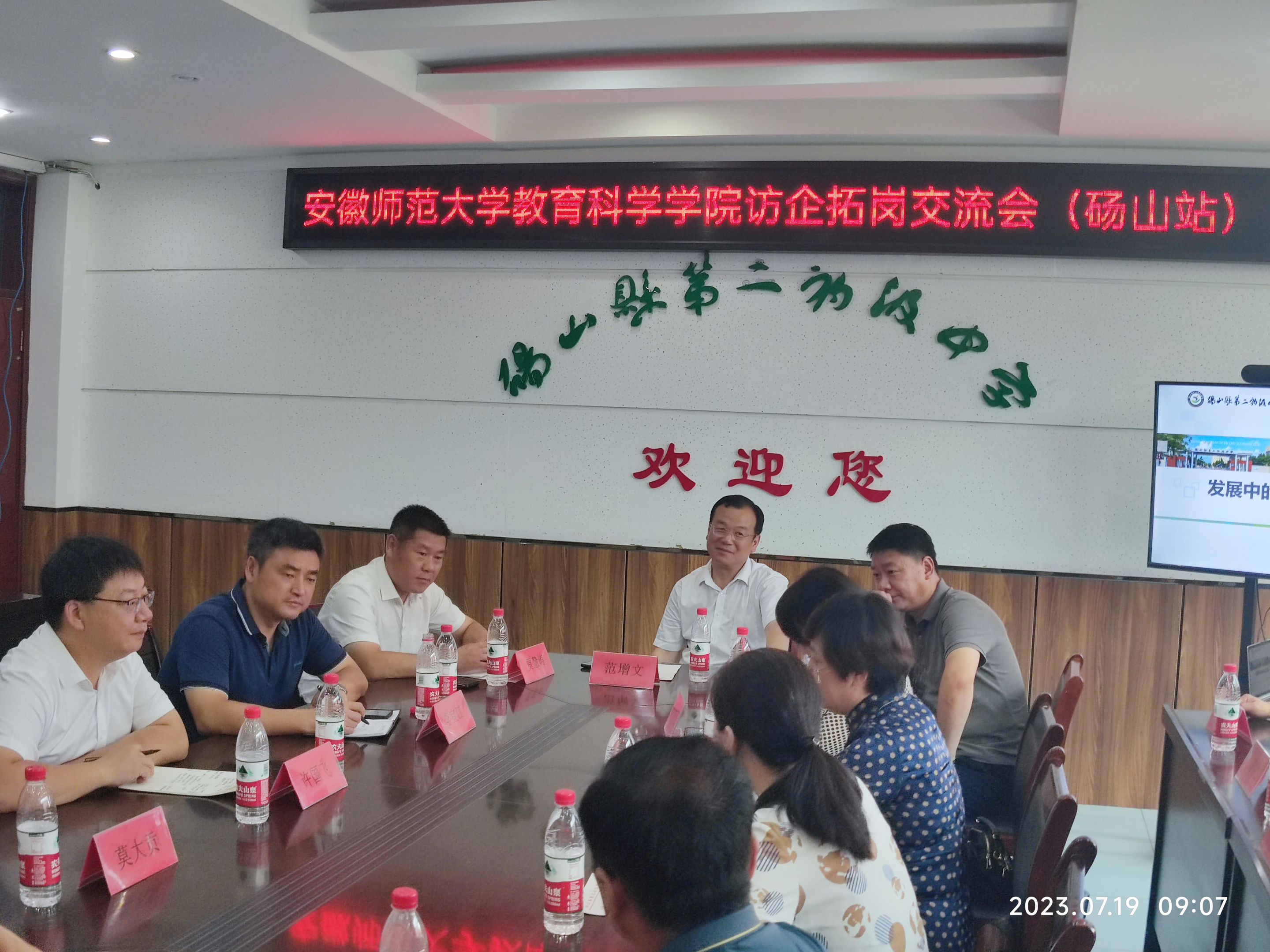 7月19日,365英国上市官网党委书记许国飞、院长李宜江、辅导员莫大贡等一行深入砀山县开展访企拓岗促就业专项行动。砀山二初中校长范增文、张新庄中学校长李峰、明德小学校长邵建波、开发区小学校长贾慧涛、砀山县中心幼儿园园长陈红梅、砀山县第一幼儿园园长仇素允等13家中小学幼儿园负责人参加活动。