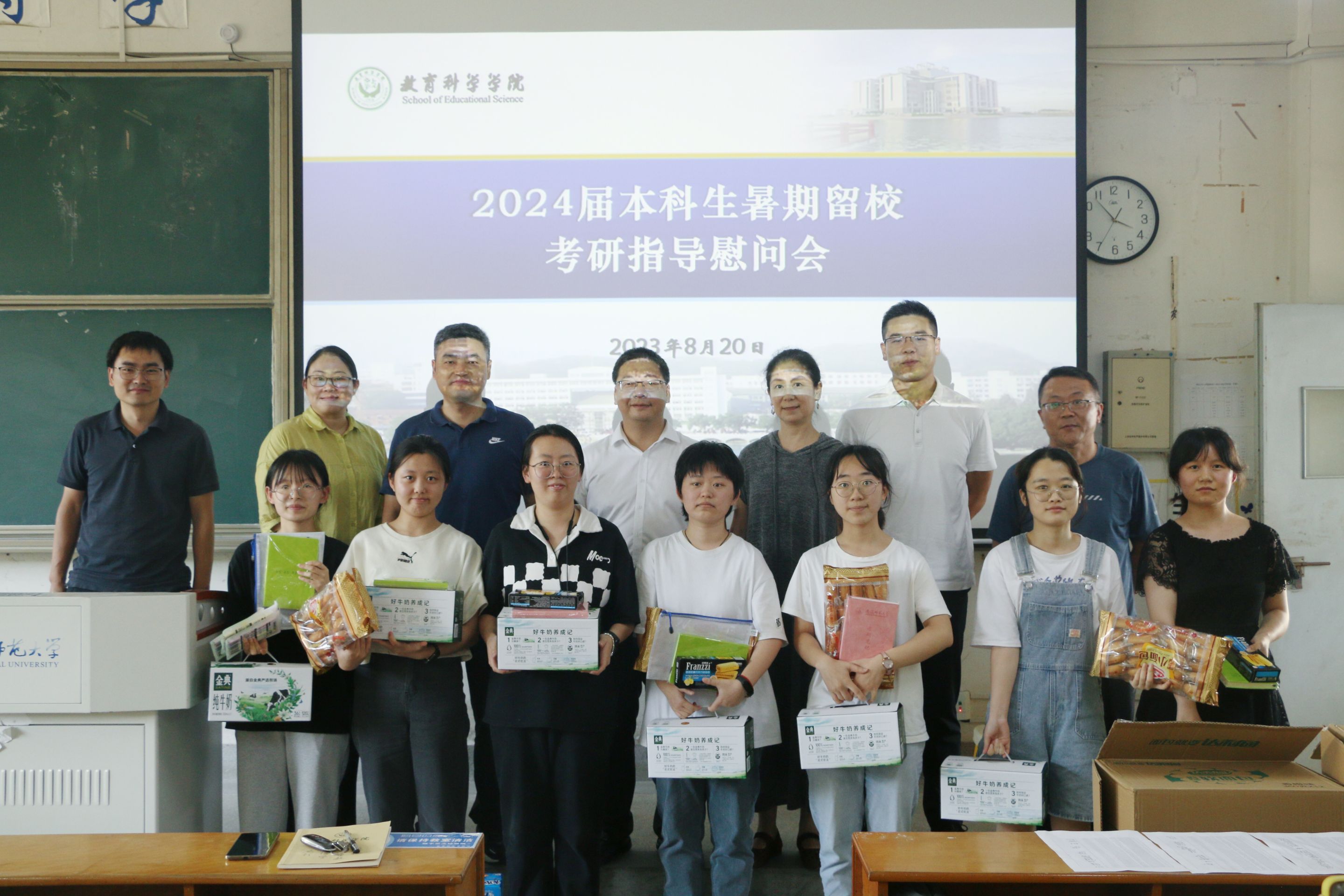 8月20日下午,365英国上市官网在田楼8101教室召开2024届本科生暑期留校考研指导慰问会。学院班子全体成员、相关辅导员,以及全体2024届暑期留校考研学生出席本次会议。