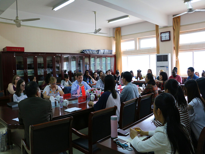 首先,院长桑青松代表我校对布莱诺大学代表团表示了热烈的欢迎,并介绍了会议流程。他认为中美合作办学有利于扩大办学的国际视野,促进教学理念的交流与借鉴,深化教育教学改革。