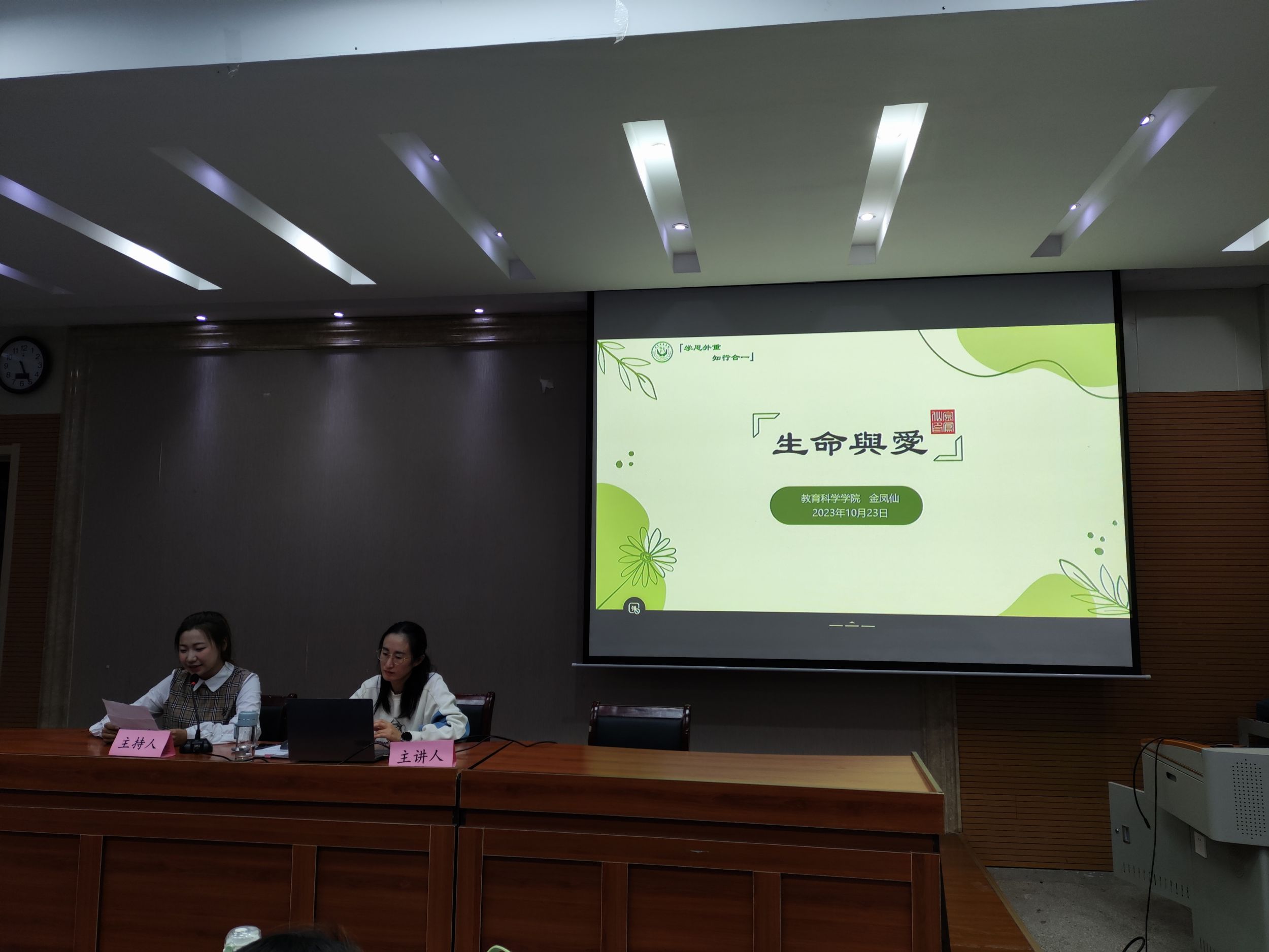10月23日,学院新生辅导员、中国心理学会注册心理师、国家二级心理咨询师金凤仙于天门山开展生命教育专题讲座,讲座详细讲述了生命的意义、面对生命的正确心态、寻求爱的力量以及心理危机的处理,深化了各位同学对生命的认识,帮助同学们树立“生命至上,健康第一”的理念,养成积极健康的人生观和生命观,增强生命安全意识,关注生命关爱他人。