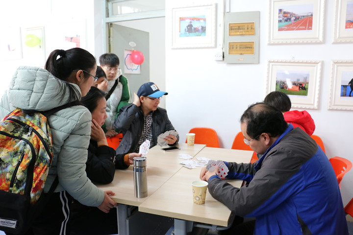 游艺活动丰富多样,既有“龙飞凤舞-跳大绳”、“棋牌”等集体项目,又有 “滚铁环”、 “踢毽子”、“定点投标”等个人趣味性的活动。各项活动区域里,呐喊声、加油声、鼓掌声充满整个现场,欢乐、温馨、和谐成了贯穿整个游艺活动的主旋律。老师们相互祝福、相互祝愿,共同感受教科院大家庭的温暖,在一片笑语盈盈中,带着对工作、对学习、对生活的热情,迎接充满希望的2018年。