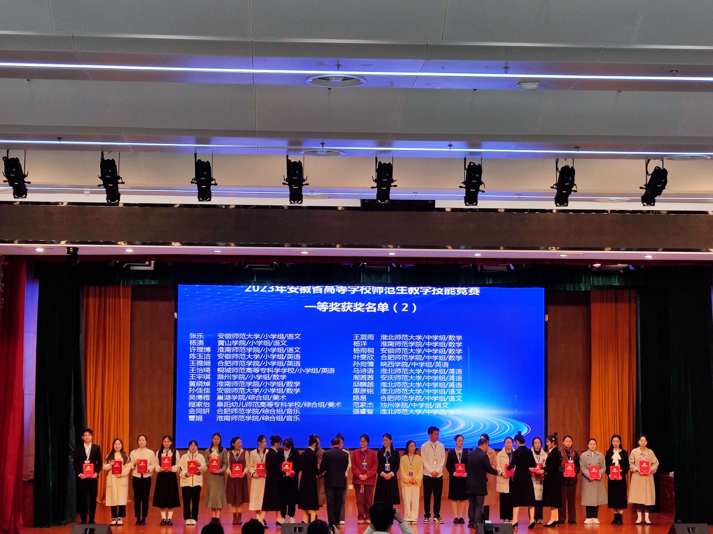 11月17-19日,2023年安徽省高等学校师范生教学技能竞赛决赛在淮北师范大学滨湖校区成功举行。本次竞赛由安徽省教育厅主办、淮北师范大学承办。我院学生经过初赛和决赛的激烈竞争,在竞赛中各环节表现优异,最终获一等奖3项,二等奖获2项,三等奖1项的好成绩。其中,张乐同学获小学语文组一等奖、孙佳佳同学获小学数学组一等奖、陈玉洁同学获小学英语组一等奖、刘玲玲同学获小学道德与法治组二等奖、王楠希获学前组二等奖、赵薇同学获小学科学组三等奖。