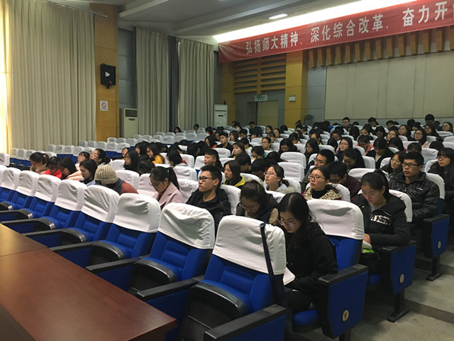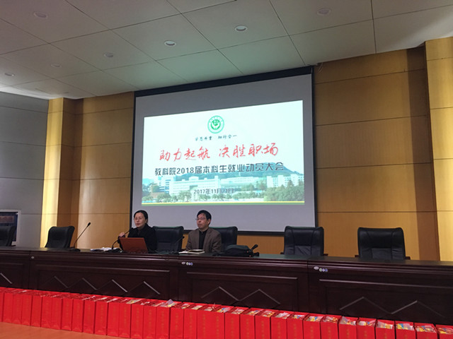 就业动员,加油打气,坚定学生就业信心。当天上午九点半,教科院在田楼报告厅举行2018届本科生就业再动员大会,院党委书记刘晓宇出席本次会议,毕业班辅导员龚伟、2018届全体本科毕业生参加此次大会。会议由学院党委副书记张如华主持。会上,张如华以形象直观的图表首先向同学们通报了学院2017届毕业生的总体就业情况,并激励毕业生要把握就业形势,坚定就业信心,做好合理定位,抓住就业机会,以积极的心态和必胜的信心投入到求职就业中。并特意就11月25号的学校师范生专场招聘会和学院12月27号的专场招聘会做了强调和提醒。刘书晓宇希望同学们转变观念、抓住机遇、精心准备、快速行动,并鼓励大家理性思考、慎重选择、重拳出击、精准就业,向就业单位展现最佳的自我,赢得就业机会。