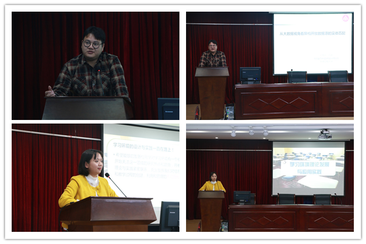 第二场是由许玮博士带来的题为《学习环境理论发展与应用实践》的学术报告。报告内容主要包括:第一,学习环境理论的学科定位、社会发展和教育信息化政策推动。第二,学习环境理论的热点趋势、理论基础和内涵界定。第三,当前物联网技术发展现状、教学现状需求及学习环境设计方面的项目延伸探索实践。许博士结合国内教育技术学科专业开设的课程、国外学者教育技术研究的成果、建构主义学习环境的隐喻、自身参与的环保主题教学活动设计实践及苏州市部分综合实践基地学校建设情况对学习环境理论发展的背景、理论和实践进行了深入浅出的阐释,并且希望所有同学关注学习环境领域的研究热点和趋势,将教育技术学的理论与实践紧密联系,充分发挥我们教育技术人对信息化教学资源和教学过程的创设、利用和管理的不可替代的作用。报告中,老师和同学们互动热烈,活跃了现场氛围,使整场讲座在轻松融洽的氛围中进行。