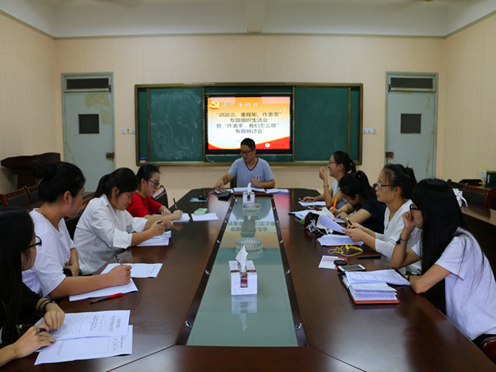 紧接着,学院每名党员认真学习交流了由学院党委自主编写的《习近平总书记关于教育工作系列重要讲话摘录读本》。在读原文的同时悟原理,深入理解总书记对教育工作的要求和期盼,立德树人,以切实做好自身工作为目标不懈努力。在学习中,大家围绕“作表率,我们怎么做?”展开了激烈的交流与讨论,大家纷纷表示,党员不是一种荣誉,更是一种责任,而这种责任和义务要求我们必须要担起表率作用,时刻紧跟党走,时刻以人民利益为重,坚持吃苦在前、享乐在后,继承和发扬党的光荣传统,让党的光辉形象熠熠生辉。