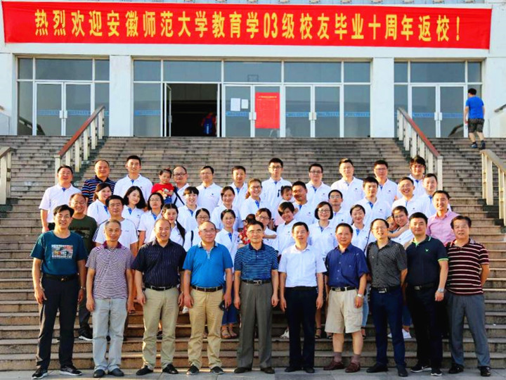 会上,2003级教育学专业校友徐江宝汇报班级基本情况;上海对外经贸大学教师朱炎军、合肥山姆大叔英语培训学校校长徐曼曼、安徽工业大学教师卢祺、广州心悦如海心理咨询公司创始人李诺和宣城市宣州区周王镇副镇长张文娟等5名校友做了汇报发言。大家介绍了十年来各自的生活、学习和事业发展等情况,大家表示感谢当年母校的培养和恩师的教诲,祝愿学院发展越来越好,各位老师身体健康、工作顺利、阖家幸福!