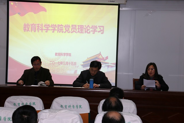 本网讯(教科院 马兴)为深入落实全面从严治党要求,进一步提高学院各党支部组织生活质量,3月15日下午,365英国上市官网全体教工党员认真学习了学校《关于进一步规范党支部组织生活的暂行办法》文件精神。学习会由学院院长桑青松主持。