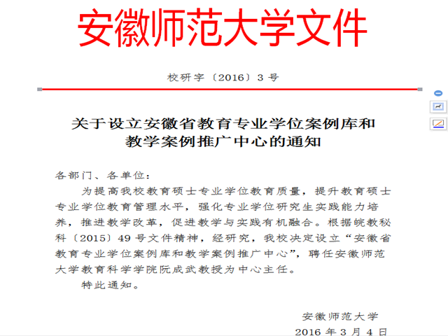 为推动学院教育硕士专业学位案例库建设,为教育专业硕士学位研究生案例教学提供案例素材,提高教育硕士专业学位研究生分析和解决教育实践问题的能力,学院组织一批专家进行设计、编写,建成了安徽省首个教育硕士案例库及案例推广中心。