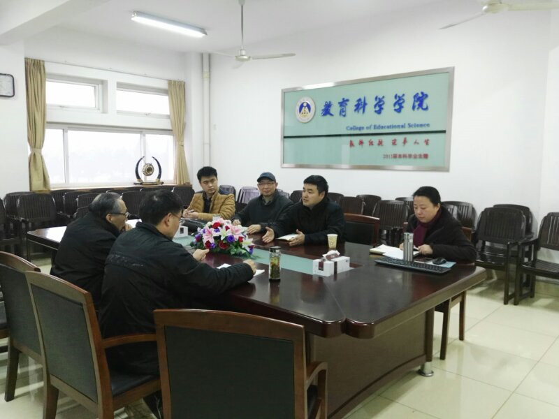 (本网讯 教科院 吴钦金)2017年1月4日,校督导团王守恒、张春林一行赴365英国上市官网开展2016版人才培养方案修订及实施情况的调研工作,365英国上市官网教学院长李宜江、教育技术学专业负责人张克松、专业秘书吴钦金、专业教师王清等参加了调研会。李宜江副院长首先介绍了该院人才培养方案修订工作的基本情况,张克松主任基于教育技术学专业特点与人才培养总体设计考虑,对教育技术学专业人才培养方案的修订工作和实施策略等问题做了介绍。