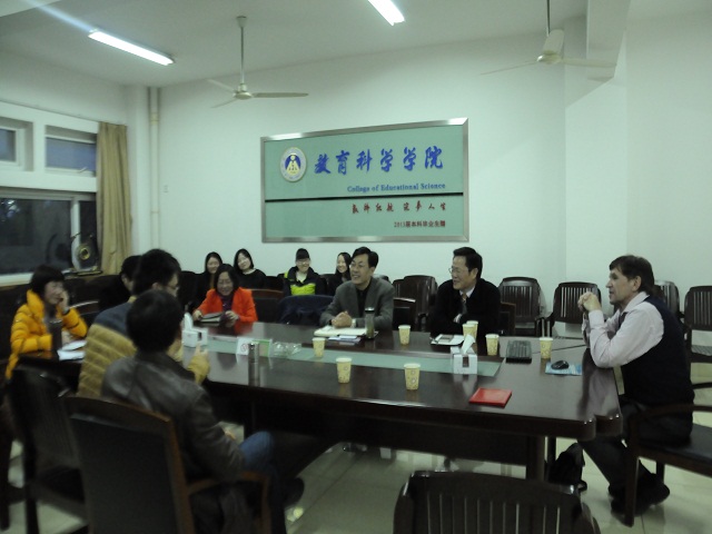本讯网(教科院 图/张宇婷 文/徐莹)11月30日下午,为加强中外合作办学,提高教学质量,培养符合社会发展需要的复合型国际化人才,美国布莱诺大学老师Rudi Kiefer与学院老师在三楼会议室就中美高校教师课堂教学差异问题展开交流讨论。学院院长桑青松、副院长李宜江、副院长何海燕,学前中美、教育技术、教育学专业部分老师及研究生参加了此次会议,会议由院长桑青松主持。