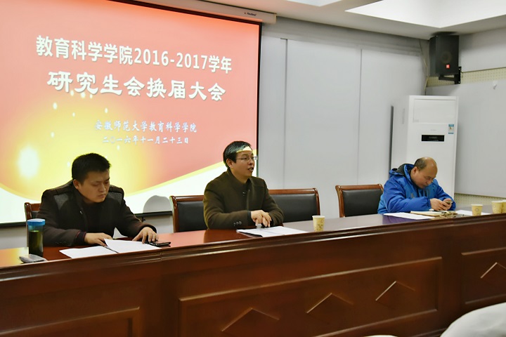 会上,上届研会主席童张梦子分享了自己工作以来的许多经验、感受与收获,她感谢各位领导老师的指导和同学对其工作的支持,并对新一届研会送上诚挚的祝福。新一届研会主席陈振同学代表研会新成员发言,他承诺与全体研会成员一起在工作中认真负责、勇于担当,争取使研会获得更好的成绩,更好地为研究生同学做好服务工作。