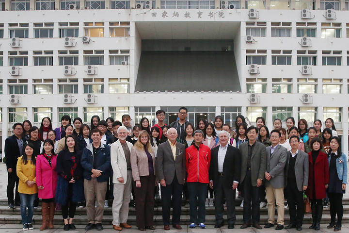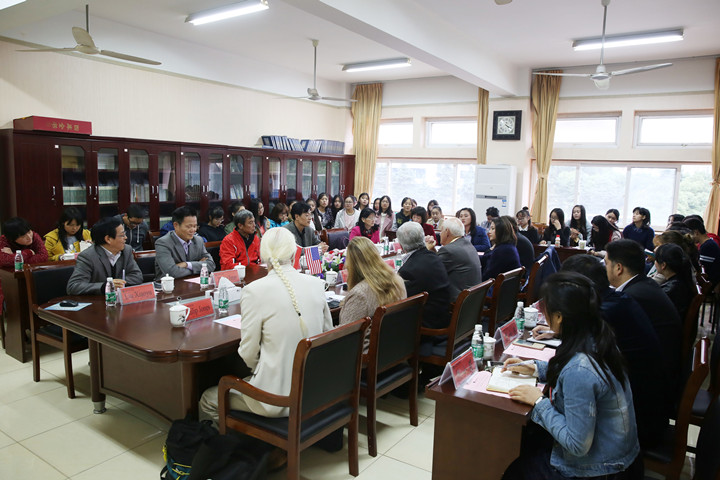 本讯网(教科院  徐莹  随小莉 )为加强中外合作办学,促进中美师生的交流与联系,111日下午,美国布莱诺大学校长一行人来我院进行了交流访问。副校长朱家存、院长桑青松、党委书记刘晓宇、外国语学院郑金泽、国教院汪诚、王曌静、中美学前教育班教师代表及1516级中美学前教育班全体同学参加了此次活动,会议由院长桑青松主持。