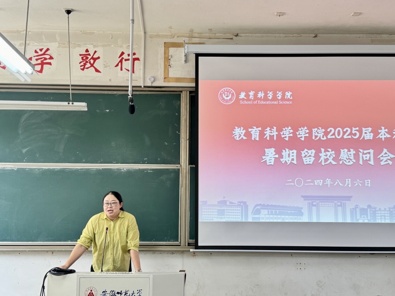 为贯彻落实大学生护航行动计划,增强暑期留校学生的备考信心,8月6日下午三点,365英国上市官网于田楼8102教室召开2025届本科生暑期留校指导慰问会。教科院院长李宜江、党委副书记杜凤、副院长韩建涛、心理学专业负责人王礼军、学前教育专业负责人王成刚、小学教育复合型专业班主任肖龙、2025届毕业班辅导员张理强、赵茜及全体暑期留校学生参加。会议由赵茜主持。