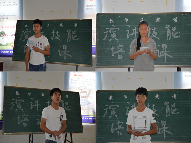 在准备演讲比赛的前夕,实践团队针对此次演讲比赛专门开设了 “演讲比赛技能培训课”,在学风浓厚的文化站,给演讲选手们在发音要求、舞台姿态等方面予以指导,尤其鼓励相对内向的留守儿童勇敢的站上舞台,挑战自我,展现自我。