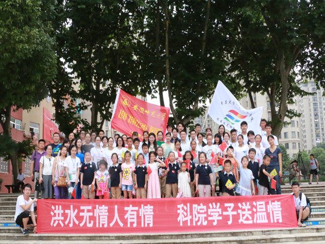 (本网讯 研究生 裴扬 胡冉冉)为了进一步锻炼沐阳团队实践品格,发扬团队奉献、友爱、互助、进步的志愿服务精神,不断提升沐阳团队的社会服务意识和社会实践能力,更是为了帮助受特大暴雨灾害影响的芜湖当地村民及早修复创伤心灵、回归简单快乐的正常生活,沐阳团队积极响应芜湖市政府号召心理援助团队投身到抗洪救灾志愿活动的重要精神,2016年7月8日大步走进芜湖市镜湖小学、镜湖新城实验学校等灾区安置点,历时一周,主动组织众多社会志愿者,集众人力量为广大受灾村民送上切实需要的温暖和帮助。期间受到芜湖电视台教育频道和新闻频道连续报道。