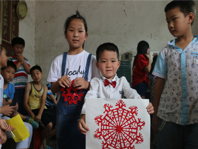 除此之外,队员们也同时结合孩子们的兴趣点,精心安排了一系列丰富有趣的手工课和绘画课程.而值得一提的是,在社会实践活动的最后一天,队员们为孩子们组织了一次“文艺汇演”。表演魔术,演唱歌曲,年幼的他们表演起来有声有色,整个教室成了欢乐的海洋。
