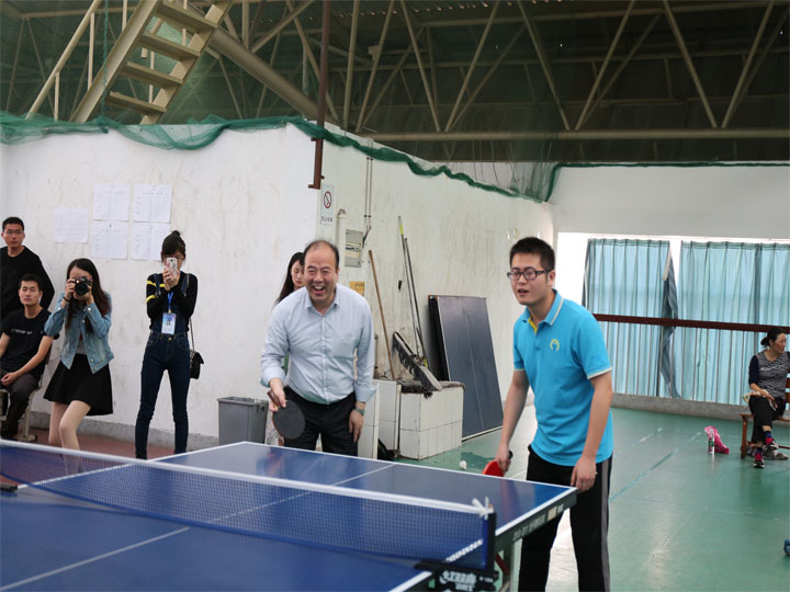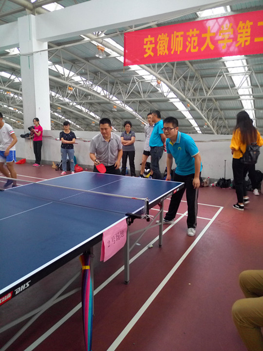本网讯(吴悦 王玉思/文 臧宇/图)为丰富广大研究生课余文化生活,营造出欢乐和谐的校园文化氛围,增进研究生与导师之间的密切联系,5月28日下午,安徽师范大学第二届“我和我的导师”乒乓球团体比赛在花津校区南侧体育馆成功举办。本次比赛是安徽师范大学第九届研究生科技文化艺术节系列活动之一,吸引了全校15个学院的研究生和导师参加。我院高度重视此次活动,组织精兵强将,由聂竹明副院长带队,查晓虎、陶佳、王芳老师,研究生杨一捷、黄朋丽、吴悦等同学参加比赛。