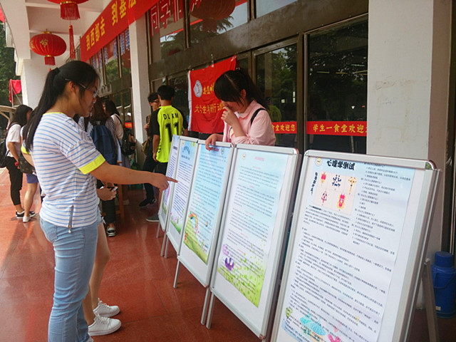 525,心理研究会于食堂广场展出了系列展板。展板涵盖了心理学相关知识、生活中的心理学、心理学电影推荐等等。工作人员向同学们讲解了展板内容,吸引了不少同学的驻足观看,也让更多的同学了解心理学,揭开心理学的神秘面纱。