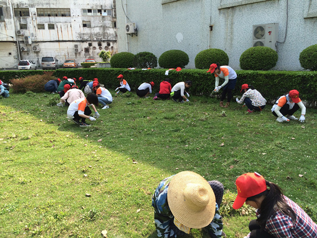 经过清洁阿姨的现场示范,同学们进入了紧张忙碌的工作中,当天的天气较为炎热,很多同学也是第一次参加类似活动,既觉得兴奋,也感受到工作的艰辛,在劳动的同时同学们唱起了钢琴课所学的儿歌,而辅导员龚老师也饶有兴趣的加入了他们工作阵营。经过两个小时的工作,看着面前堆积如山的杂草,同学们露出了满意的笑容。