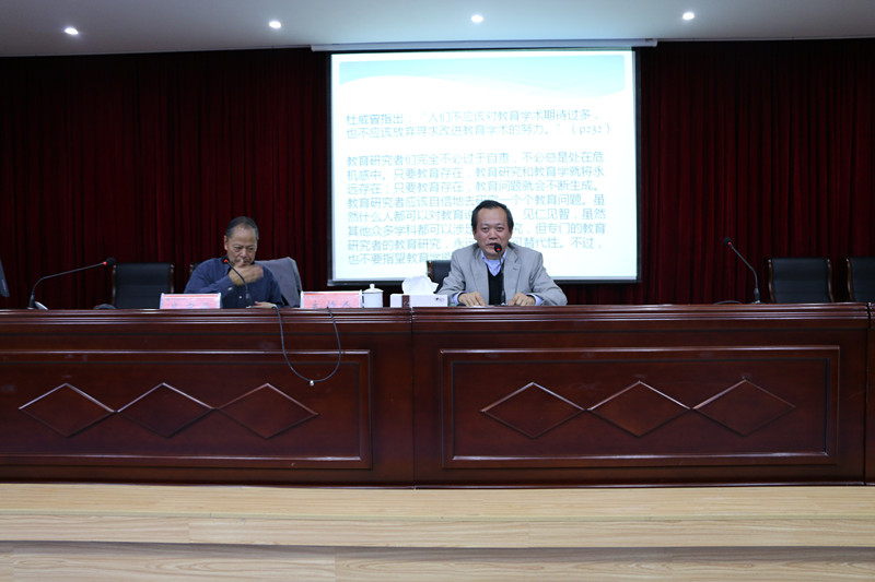 阮教授最后总结了扈教授的报告内容,认为扈老的报告是既是对教育学客观的认识,又本着求是求实的原则,对教育学本体、本土表达了充满反思、勇气和睿智的深刻认识,并具有哲学、让人幸福的观点,他希望大家听取了扈教授的报告后,摆正平和心态,扎扎实实做研究,彰显教育学的价值、优势和前景。整场报告持续了3个小时,在与会师生的热烈掌声中圆满结束。
