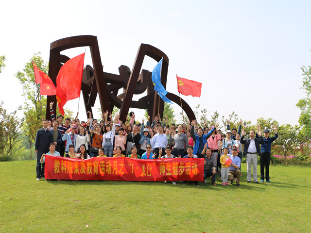 “我们很多同学平时就是缺乏锻炼,像这样的活动不仅有趣,而且还很有价值,要多开展”,一向“健步如飞”的查老师如是说道。“虽然有点累,但是晒晒紫外线有利于杀菌除湿,也挺不错的”,一位学生也表达了自己的观点。一路上,大家精神洋溢、朝气蓬勃。1公里,2公里,3公里……随着时间的流逝,我们离目的地雕塑公园也越来越近,老师们乐在其中,同学们更是井然有序。