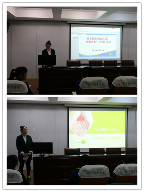 本网讯(教科 马兴)为引导青年大学生积极践行社会主义核心价值观,营造典型引领氛围,3月31日中午,学院举行了2016年“教科之星”十佳大学生评选汇报活动。学院党委副书记张如华、团委书记龚伟、辅导员莫大贡、马兴参加了此次汇报会。