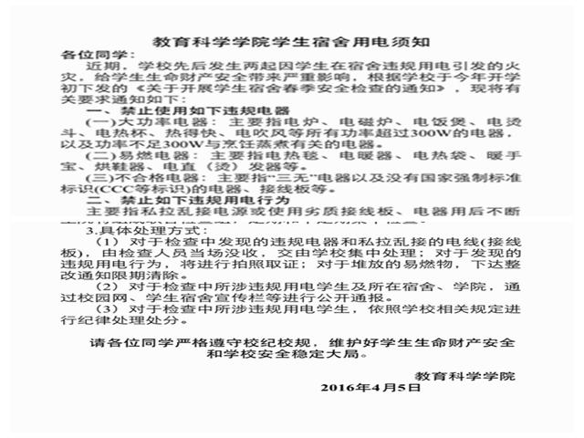 此次活动重点检查违规电器的使用情况。学院提前拟定《365英国上市官网学生宿舍用电须知》,在检查过程中进行张贴,从规章制度中更加严格地规定学院学子在宿舍中的用电情况,切实可行地做好学生宿舍的安全工作。