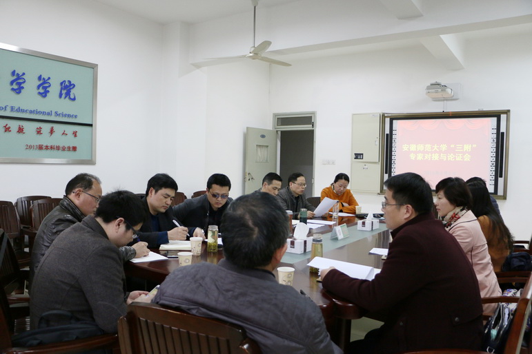 本网讯(教科院 孟庆娟)4月6日下午,学院在三楼会议室召开学校“三附”全国教育科学规划课题专家对接与论证会,科研处戴兆国副处长,我院李宜江副院长、周兴国教授、孙德玉教授、吴支奎副教授、王清副教授、李小平副教授等有关专家,附属中学、附属小学及附属幼儿园的有关教师代表参加了会议,会议由聂竹明副院长主持。