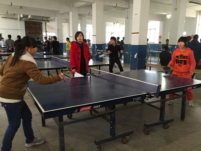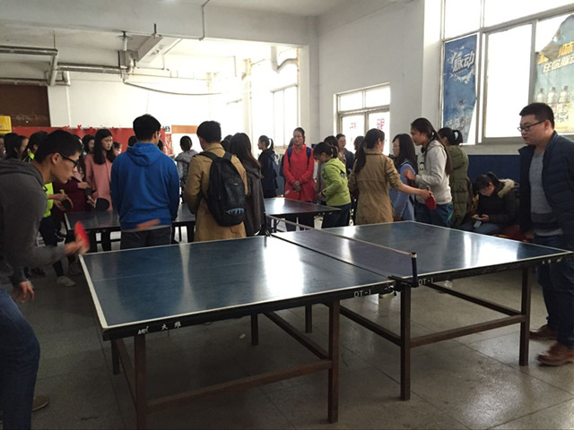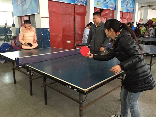 上午8点,比赛还未开始,就已经有选手在进行准备和预热工作,工作人员也在紧张细致地准备着赛前安排,这不禁为比赛增添了几分紧张的气息。随后,比赛如约而至,女生虽温柔但也巾帼不让须眉,一轮轮扣人心弦的厮杀,让观战的观众拍手叫好,男生一次次迅捷如风的猛攻,“快、准、狠、变”给大家留下了深刻的印象,跳跃旋转的小球如同闪电在空中划过一道道痕迹。下旋球,上旋球,强力扣杀,反拉、正拉;很多高难度的动作被选手们完美呈现了出来。男双、女双的比赛因为要求配合默契,短兵相接,更是吸引了很多学生的观看。
