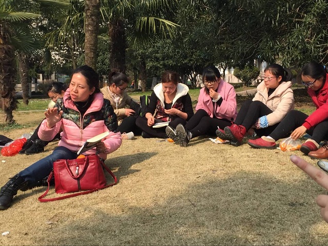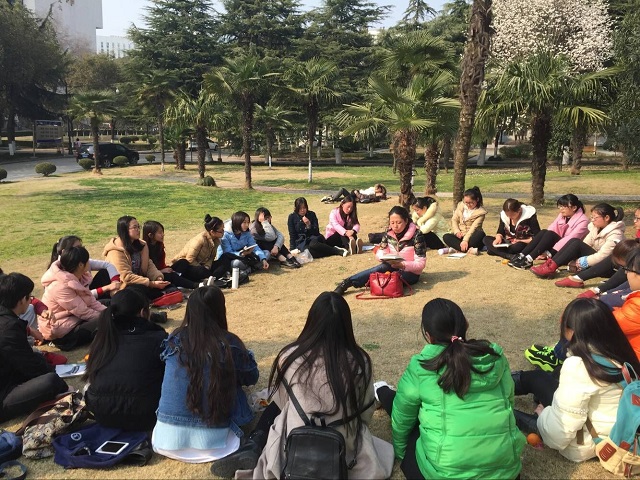 本网讯(教科院 黄玉绒)早春二月,绿意萌动,2016年2月29日下午,365英国上市官网15级教育技术学专业全体同学及班主任陶佳老师在“情人坡”召开了一次与众不同的“阳光班会”。全体同学和老师在情人坡上围成一圈席地而坐,一边品尝橘子的甜香,一边沐浴和煦的日光,在醉人的春风中拉开了班会的帷幕。