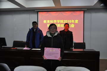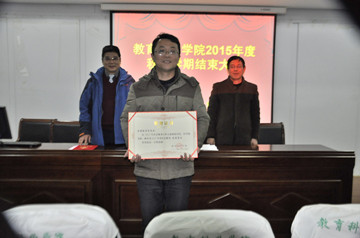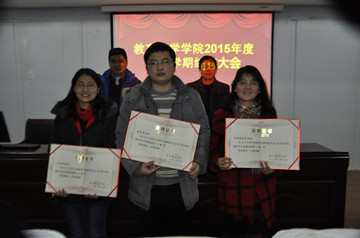 2015年度,全院教职工紧紧围绕中心工作,凝心聚力,开拓进取,各方面工作均取得了丰硕的成果,涌现了许多先进个人和先进集体,为了表彰先进,树立典型,学院在专业建设、行政管理和社会服务等方面进行了绩效考核,对做出优异成绩的教职工予以表彰。会上,院长葛明贵宣读了获奖名单,共有4名教职工和3个专业获此殊荣,学院领导为获奖者颁奖