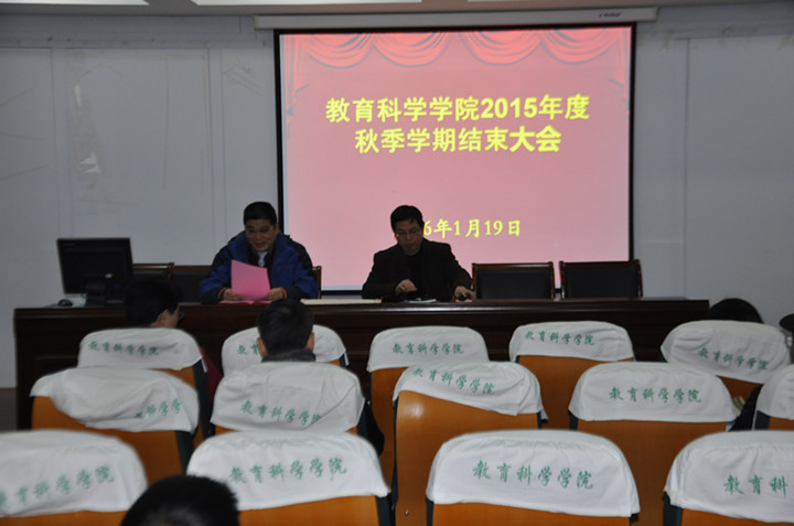 (本网讯  教科院  卞纲要)1月19日下午,学院在学术交流中心召开了全院教职工大会。总结2015学院各项工作,表彰先进个人和先进集体,大会由院长桑青松教授主持。