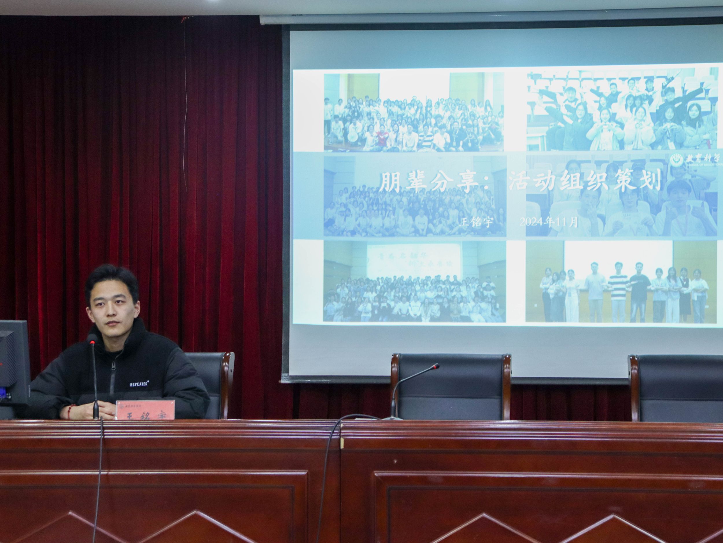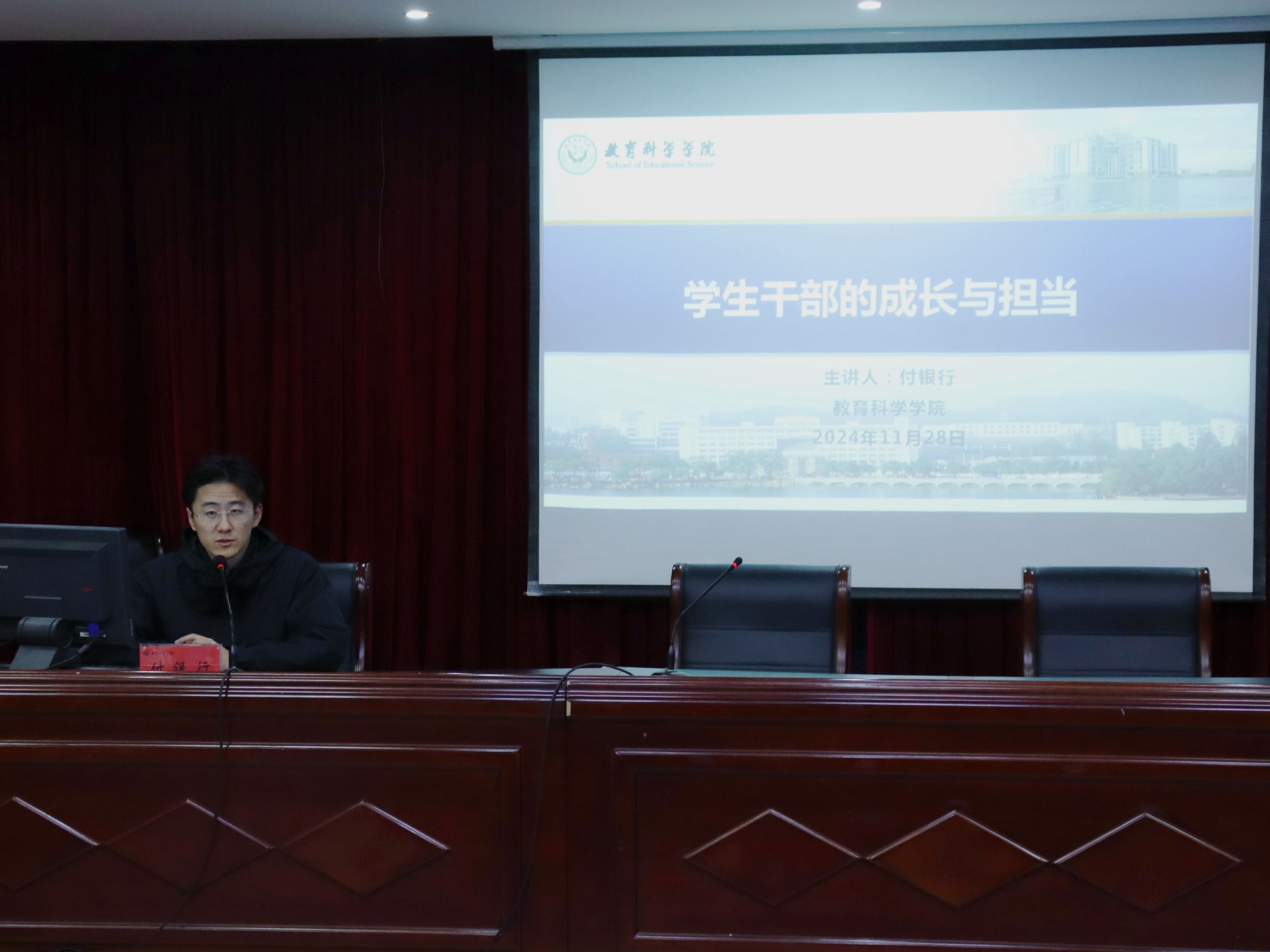 团星昭远路,学骨引新航。开班式上,研究生辅导员莫大贡为培训班同学讲解党的二十届三中全会精神,深入分析大会主题、议程以及主要内容,鼓励同学们加强理论学习。院团委书记付银行以《学生干部的成长与担当》为主题展开分享,从学生干部的三大能力和六个关键方面强调学生干部需明确自身定位并提升奉献意识,鼓励同学们成为能说、会写、善干的学团骨干。