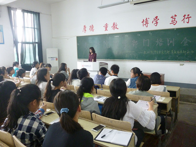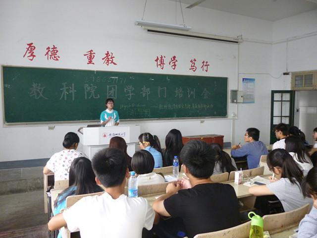 开班动员仅是好的开始,接下来的一周时间,学院团委学生会共11个部门分为四个培训小组,分批次举行了面向部门成员及15级班委的培训会。