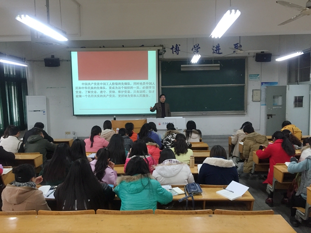 授课期间。刘晓宇首先以习近平总书记的一句话“认真学习党章,严格遵守党章”作为开场,强调了中国共产党是中国工人阶级的先锋队,同时是中国人民和中华民族的先锋队,要成为这个组织的一员,必须学习党章,了解党章,遵守、贯彻、维护党章。其后他以生动形象的语言向我们讲述了党章的内涵、地位、历史等知识。党章是中国共产党为实现党的纲领所制定的根本法规,是党的各级组织和全体党员必须严格遵守的基本准则和规定,共经历了18次修订,是我党立党之政治根基和最高法律。最后,他在思想上、政治上、组织上提出了合格党员的标准,希望我们积极学习贯彻党章,严格要求自己。