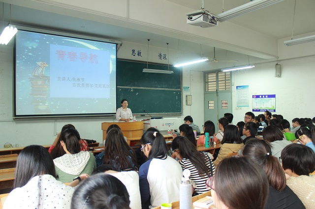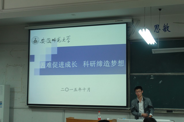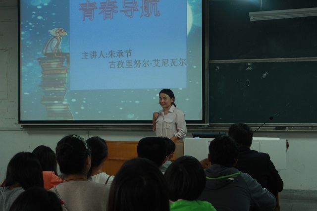 本网讯(教科院 胥仙红)为了充分发挥优秀大学生的榜样示范作用,引导新生自立自强,教科院于10月25日下午在8210教室举办了2015级新生“青春导航”优秀大学生事迹宣讲活动。邀请了中国大学生自强之星标兵、安徽省五四青年奖章获得者、学院2001级优秀毕业生古孜里努尔·艾尼瓦尔和校十佳大学生、自强自立标兵朱承节作为主讲人,学院2015级辅导员莫大贡和2015级心理学、应用心理学和教育技术学的全体学生认真聆听了该场报告会。