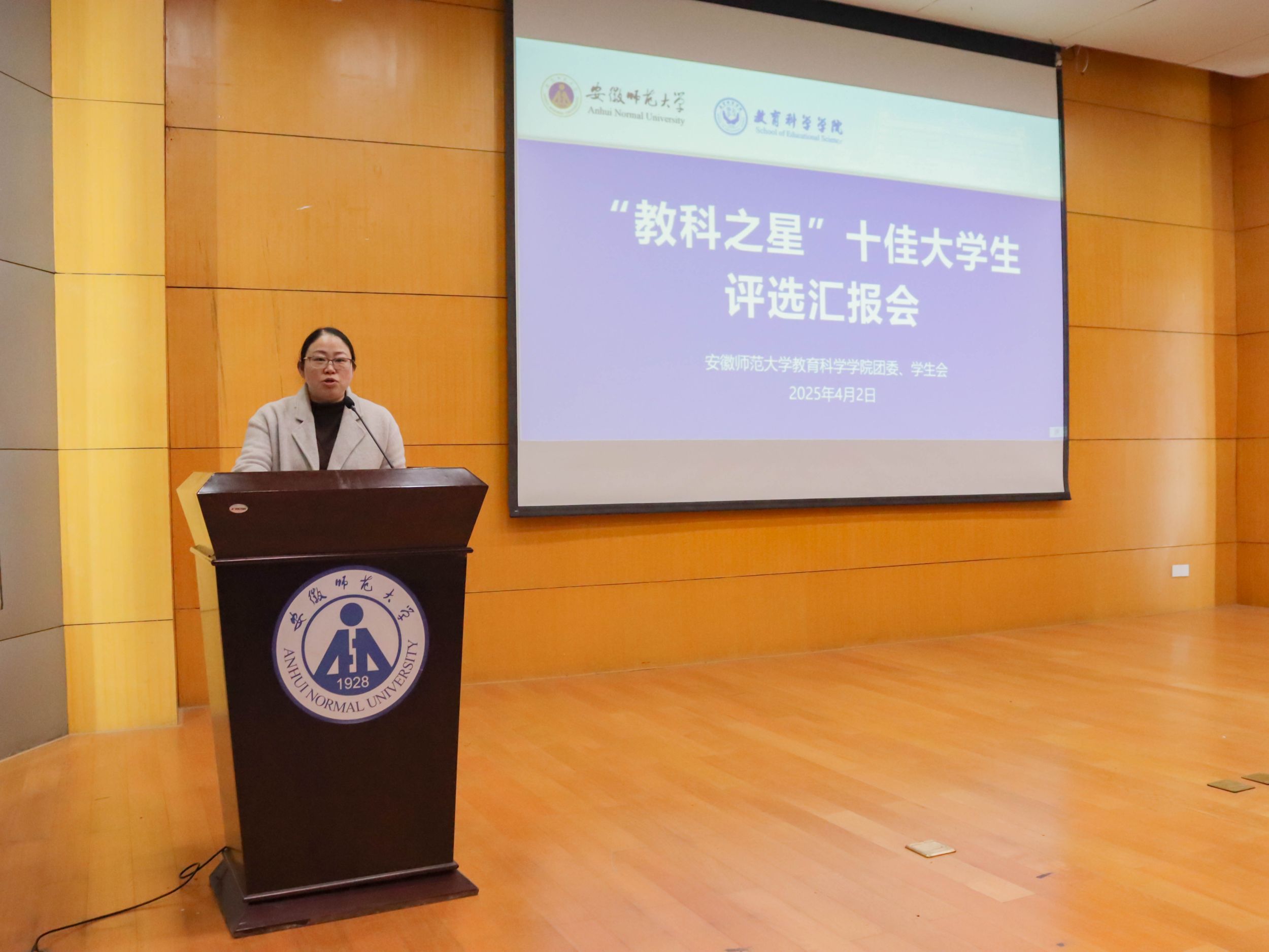 杜凤在总结讲话中指出,“教科之星”十佳大学生评选旨在为学生提供展示自我的平台,通过朋辈引领激励成长,各年级同学应向榜样看齐、向典型学习,形成朋辈互助的积极氛围,并希望入选的同学能够以身作则,带头示范,更加严格的要求自己,以"教科之星"精神践行榜样力量。