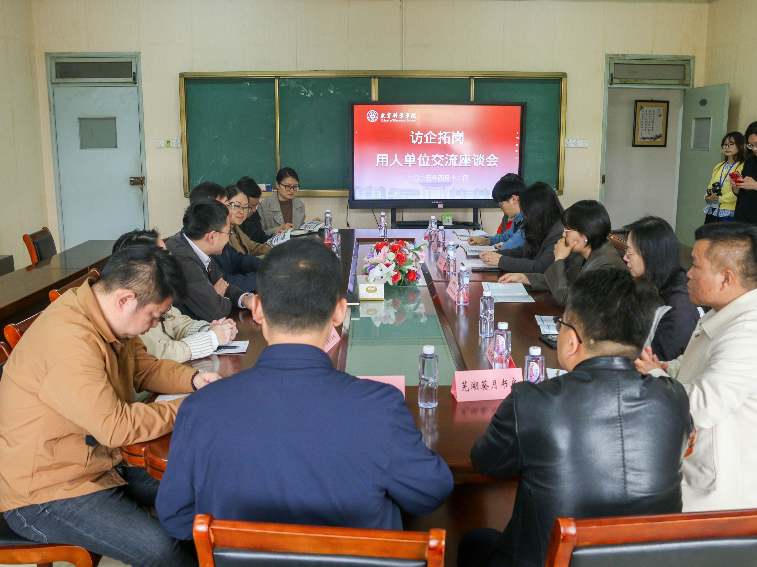 各单位负责人依次介绍了本单位的岗位需求、企业文化等信息,并结合近年来招募用人情况进行了深入交流。用人单位首先肯定了教科院培养学生的质量和成效,同时指出希望进一步增强学生的职业规划意识,在保持专业技能扎实的基础上提高实践操作能力,为未来就业做好充分准备。韩建涛进行总结讲话,希望后期加强同各单位间的交流合作,深入开展校企合作,增进用人单位与毕业生的信息互通,推动毕业生高质量充分就业。