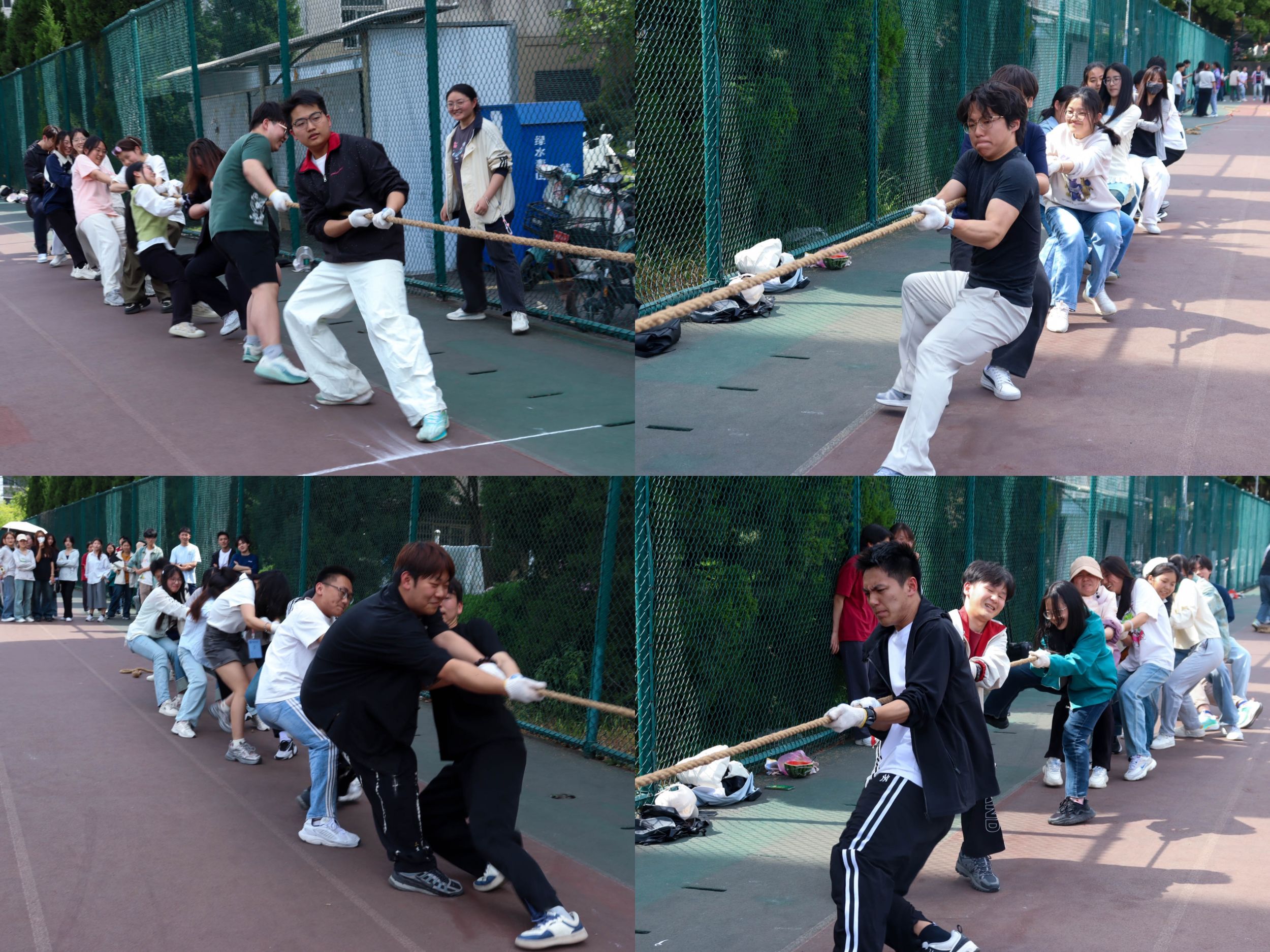 开幕式后,举行了学生趣味运动会——拔河团体赛与同心击鼓。在工作人员与同学们的努力下,比赛秩序井然,氛围热闹轻松。趣味运动会是素质教育的生动载体,通过轻松愉悦的场景,构建学生个体发展、团队协作与校园文化融合的多维育人空间。