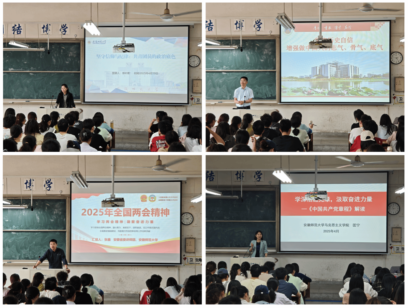 本次培训班共计进行7次理论授课,内容涵盖党的理论知识、党史教育、党性修养等多个方面。教科院兼职辅导员刘玉瑾、教科院专职辅导员莫大贡、教科院团委书记付银行、校党委统战部李叶青、马克思主义学院副教授匡宁、生命科学学院党委书记王少仁以及马克思主义学院副教授张鑫等人分别以《朋辈辅导:青年学子的成长与担当》《只有走进马克思才能走近马克思——品读〈共产党宣言〉》《习近平关于青年工作和共青团工作的重要论述》《坚守信仰与纪律:共青团员的政治底色》《学深悟透党章,汲取奋进力量》《坚定历史自信 增强做中国人的志气、骨气、底气》《学习两会精神、凝聚奋进力量——2025年全国两会精神解读》为主题,为学员们深入解读党的基本理论和方针政策。授课人员结合实际案例,引导学员们在理论学习中汲取智慧和力量。