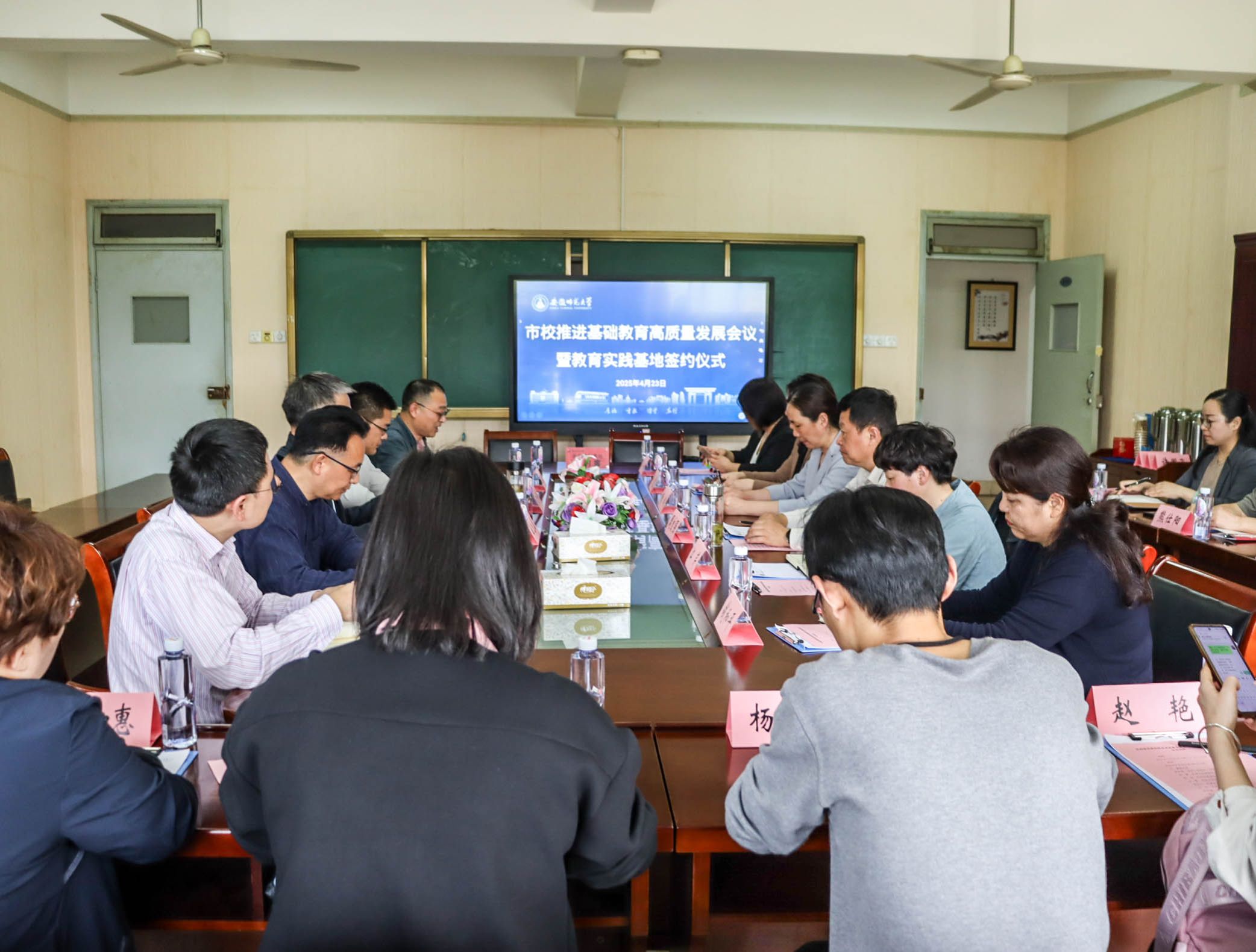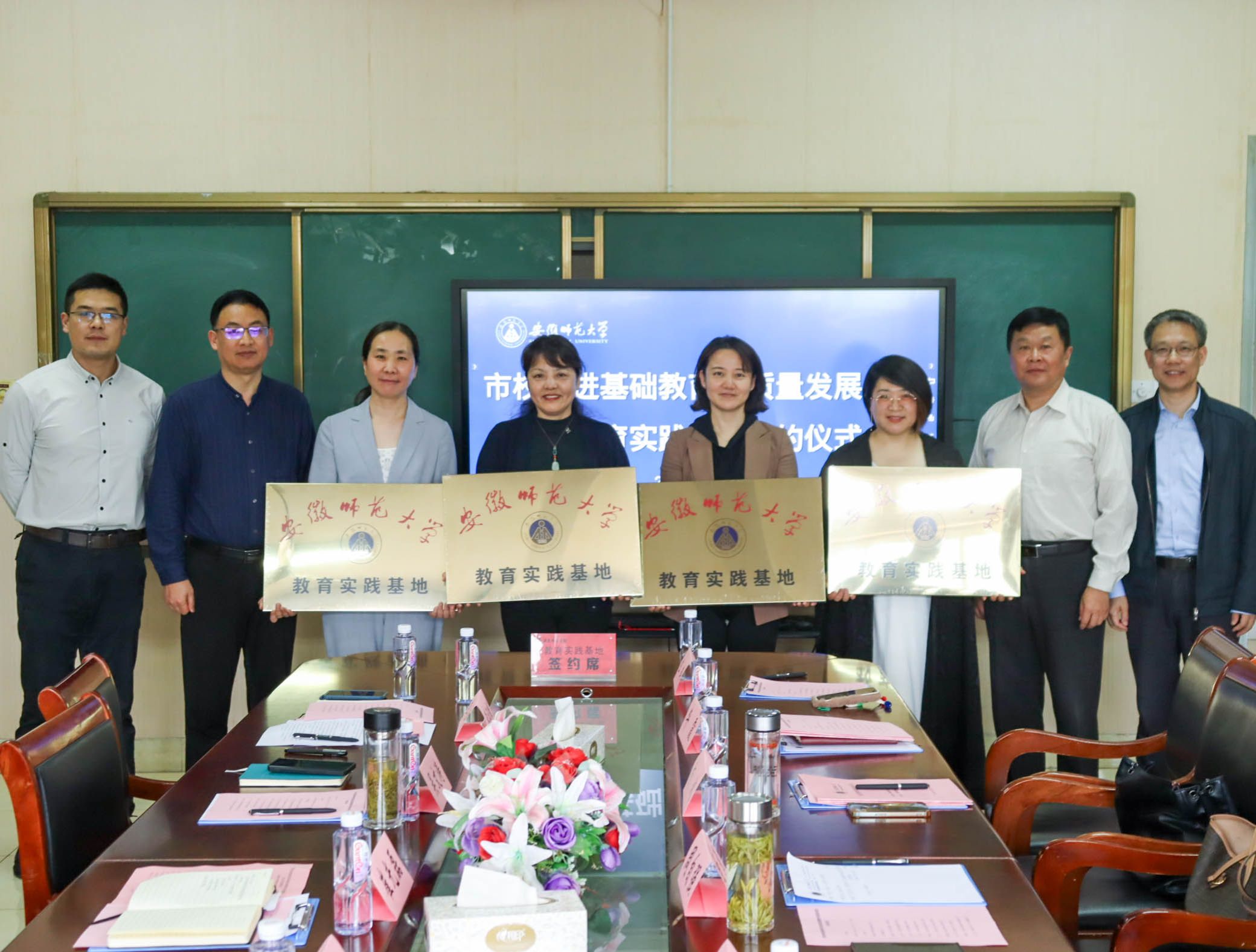 为贯彻落实基础教育振兴和大学生护航行动计划,促进人才培养工作,进一步提高育人质量,市校推进基础教育高质量发展会议暨教育实践基地签约仪式于4月23日在365英国上市官网408会议室成功举行。芜湖市教育局二级调研员周自强、安徽师范大学教务处处长崔光磊、教师教育学院院长宋波、365英国上市官网院长吴文涛、教务处副处长李汪根、365英国上市官网副院长韩建涛,以及芜湖市特殊教育学校、芜湖市镜湖幼儿园、芜湖市育红小学等7家学校负责人参加本次会议,会议由教务处副处长李汪根主持。
