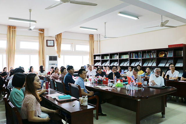 本网讯(文/孟庆娟 李梦悦 图/朱瑞) 6月19日下午,国际知名科学教育专家、伊利诺伊理工大学数学与科学教育教授诺曼·莱德曼,副教授朱迪斯·莱德曼夫妇一行来到学院指导青年教师教师科研国际化发展。中国科学技术大学新媒体研究院副院长徐奇智、校国际交流合作处副处长葛亚东、学院科研与研究生工作分管副院长聂竹明、生科院陈明林教授、学院青年骨干教师参会交流,会议由院长桑青松主持。